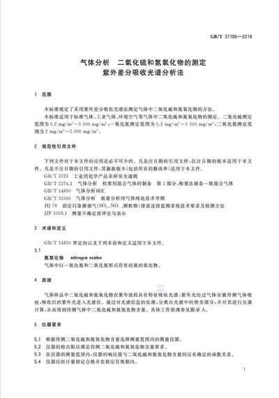 GB∕T 37186-2018 氣體分析二氧化硫和氮氧化物的測(cè)定紫外差分
